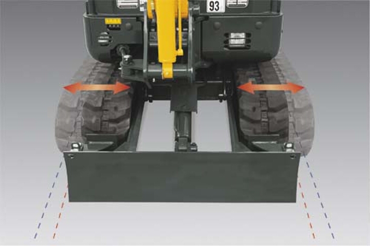 Verfügbare Anbauteile: Tieflöffel mit oder ohne Zähne und Grabenräumschaufel hydraulisch schwenkbar